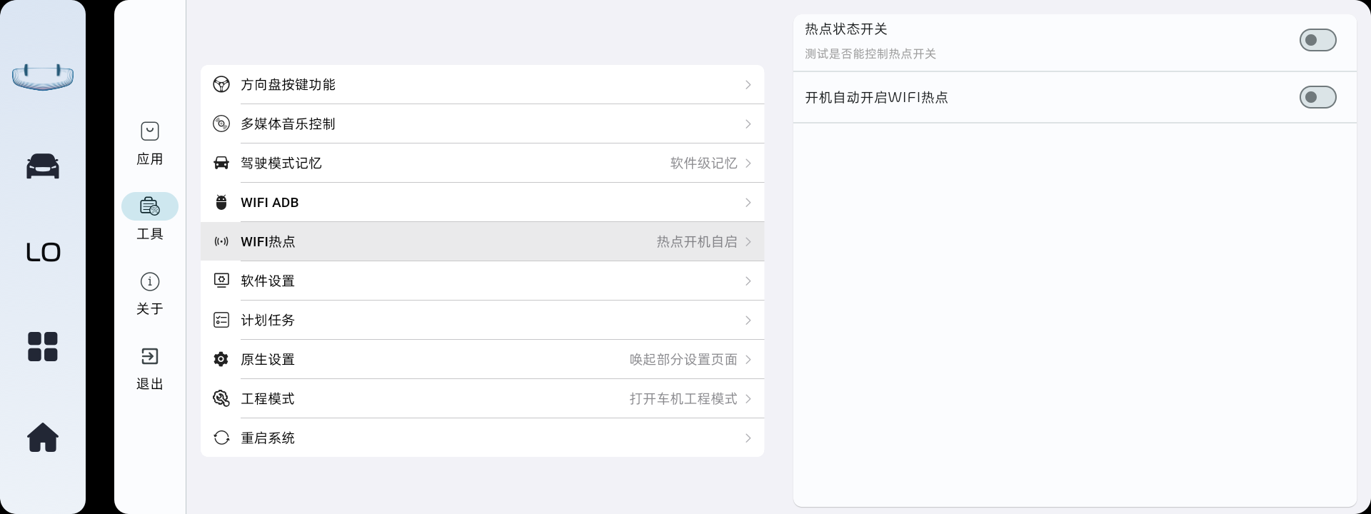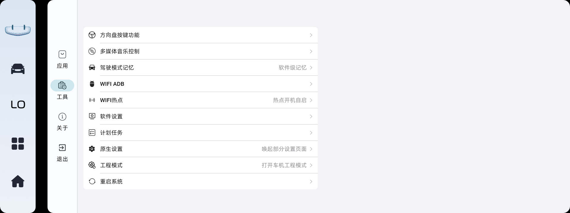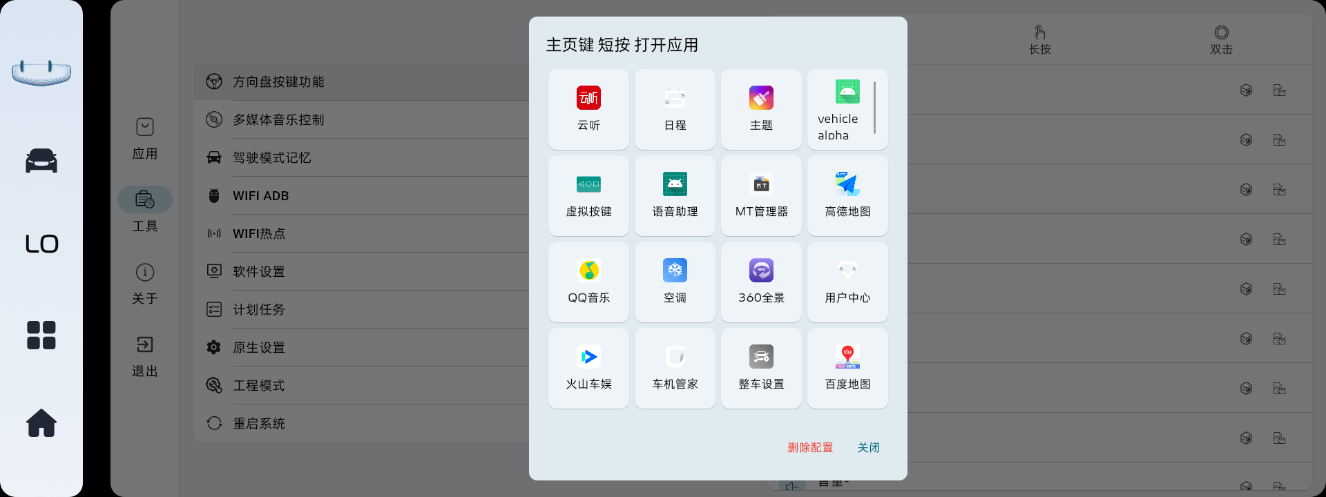 WIFI ADB:在车机助手内打开、关闭wifi adb,不用再打开工程模式。