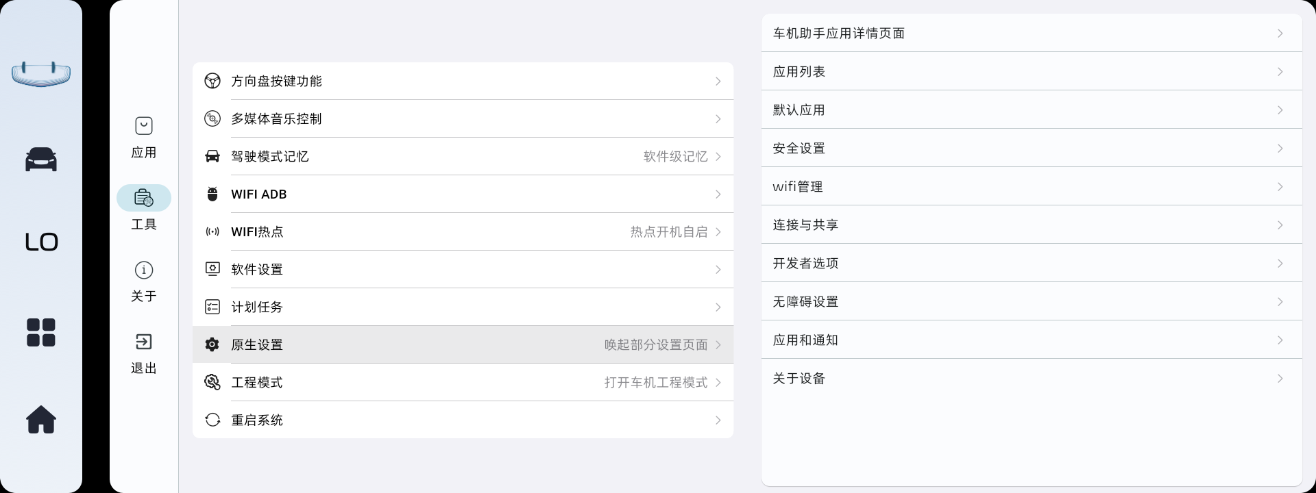 需要先安装不再要求安装原生设置,因为车机助手需要一些读写权限。原生设置,可以通过下述adb命令授予权限。安装车机助手,未破解的车机需要通过