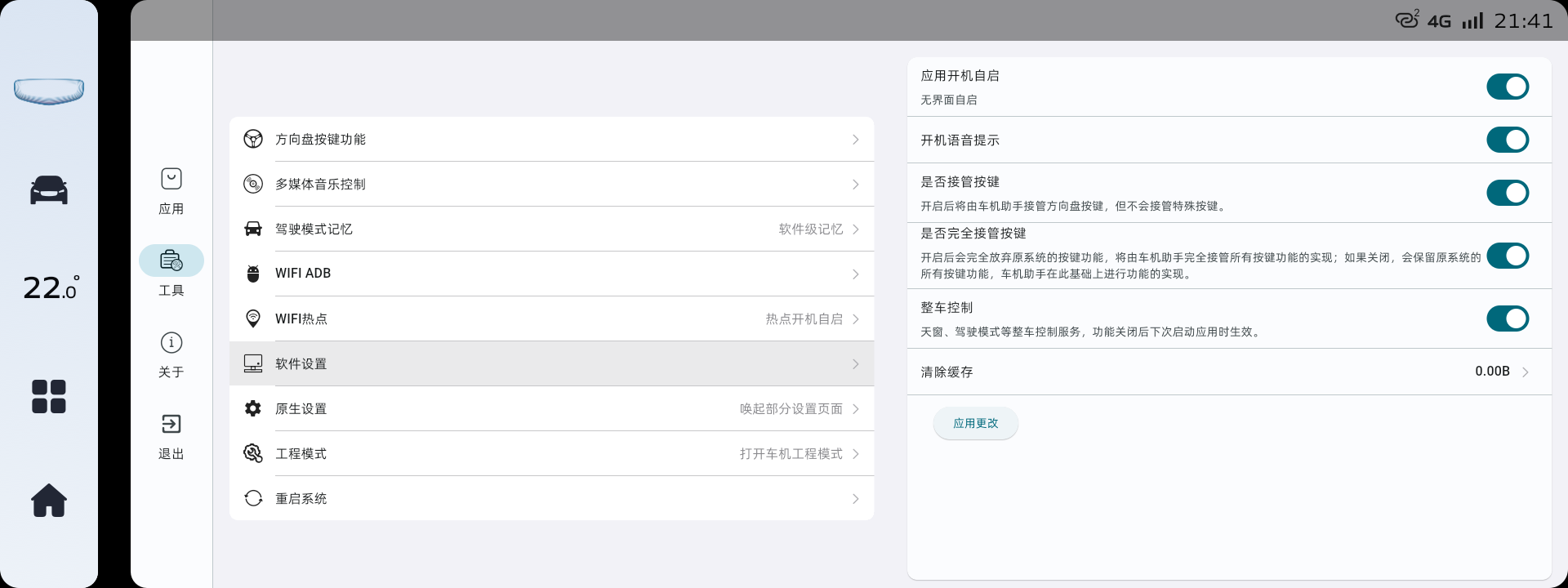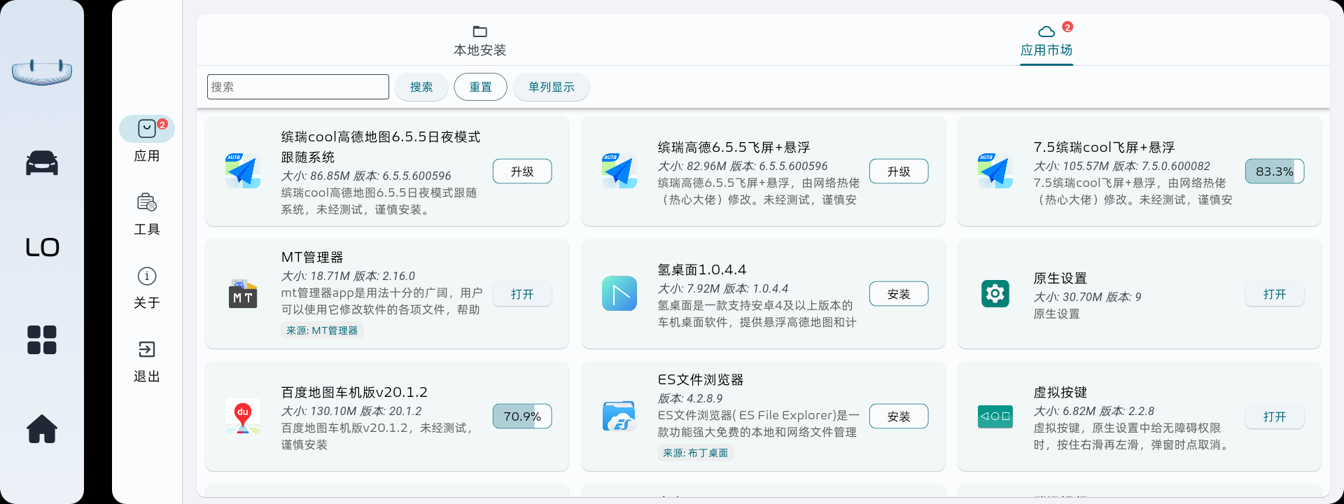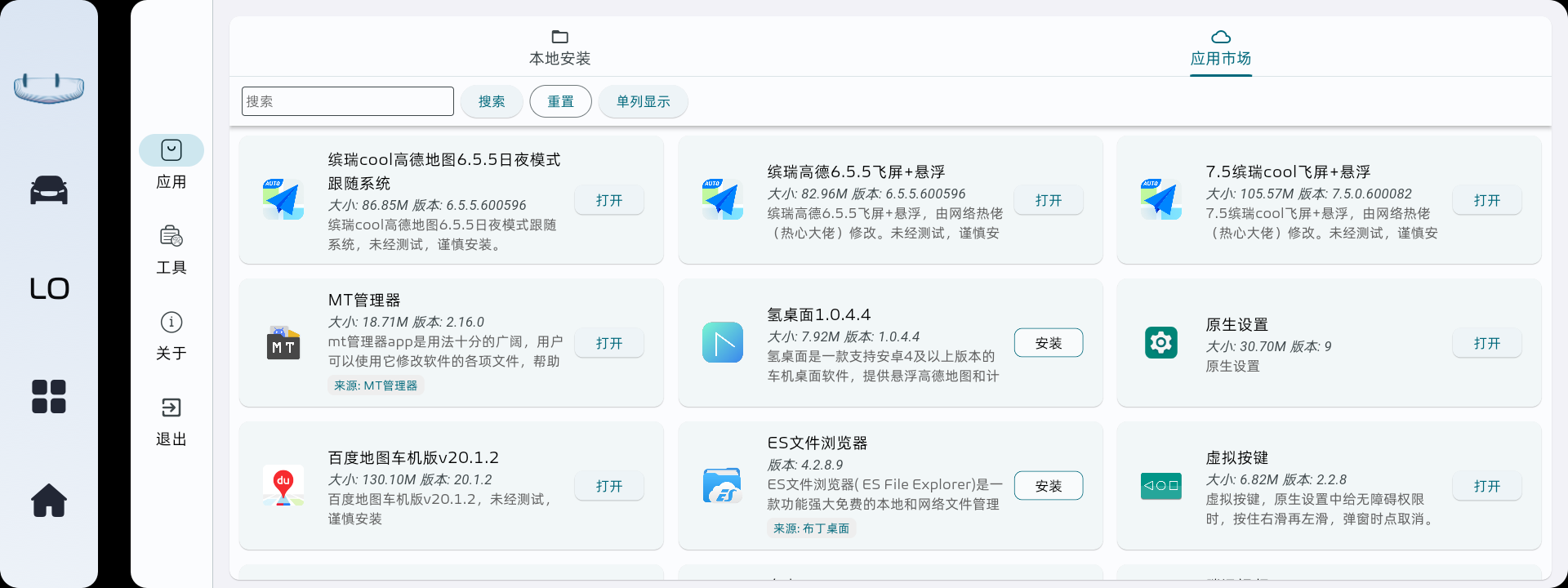 应用免验证安装:没有破解的车机可以借助这个功能实现应用直装,不会进入白名单验证。注意,安装过程会产生缓存文件,可以在软件设置中清除缓存。